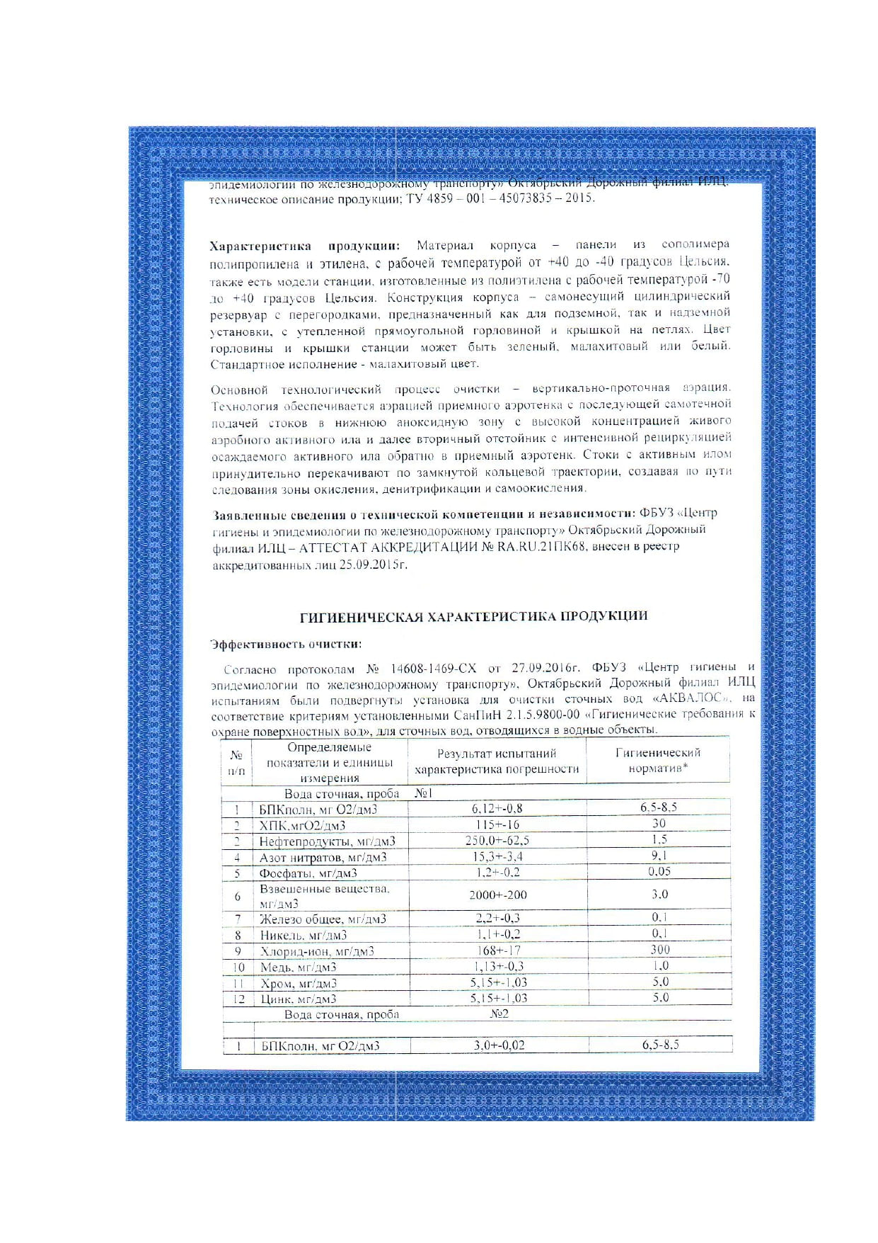 - Степень очистки септика составляет 96 - 98%