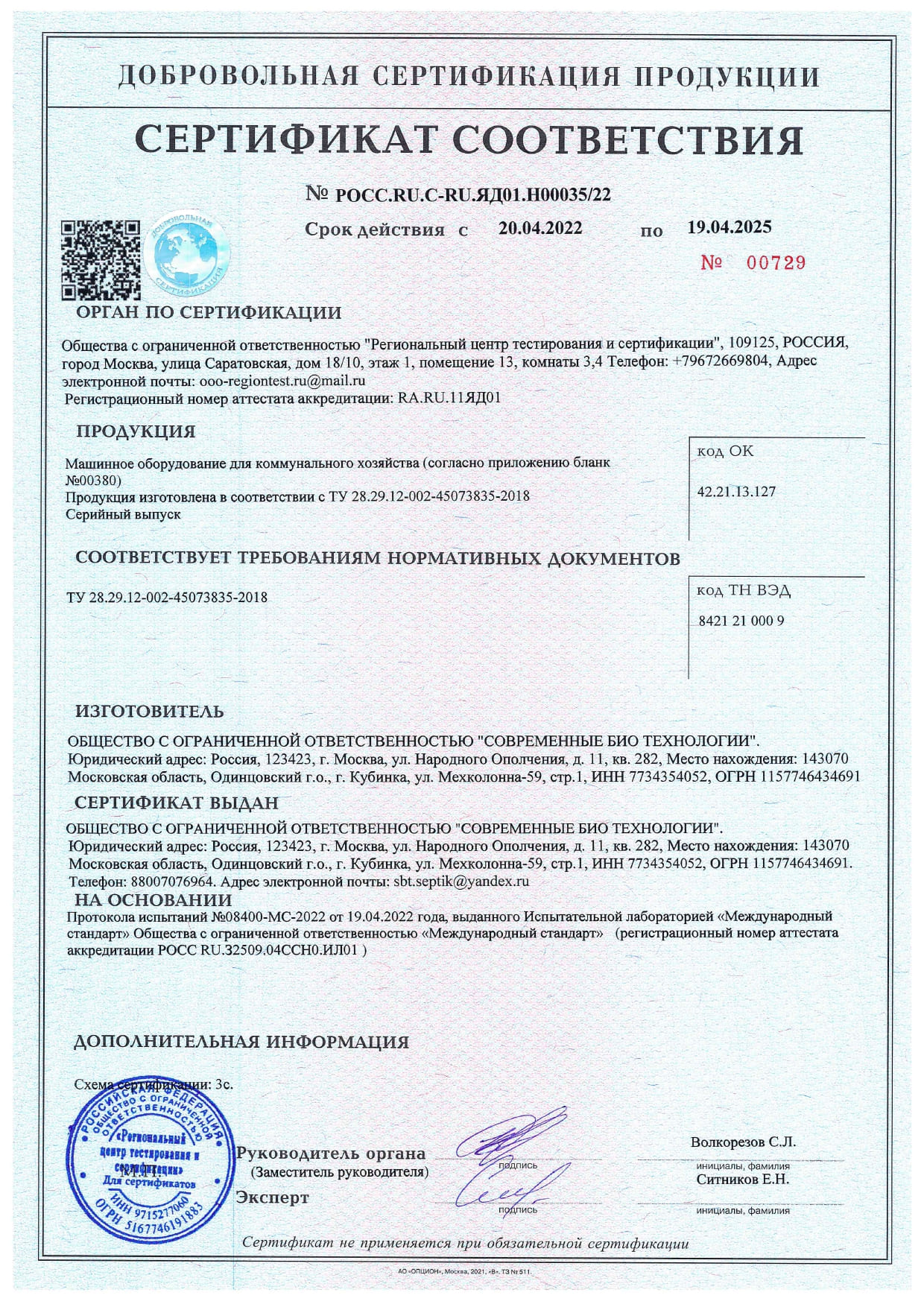 Объем переработки: 3 м3/сут