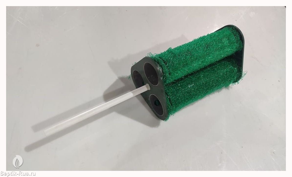 Регенерация биозагрузки (смывание отмершего ила) осуществляется при помощи крупнопузырчатой аэрации. Объем подаваемого для регенерации воздуха регулируется краном. Затем удаленный с загрузки ил посредством эрлифта возвращается в первую камеру.