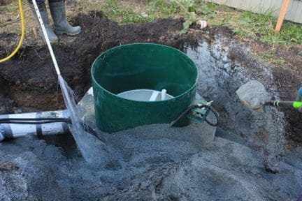 - Осуществляется разработка котлована с учетом уровня грунтовых вод и размеров септика, чтобы обеспечить безопасное его погружение.